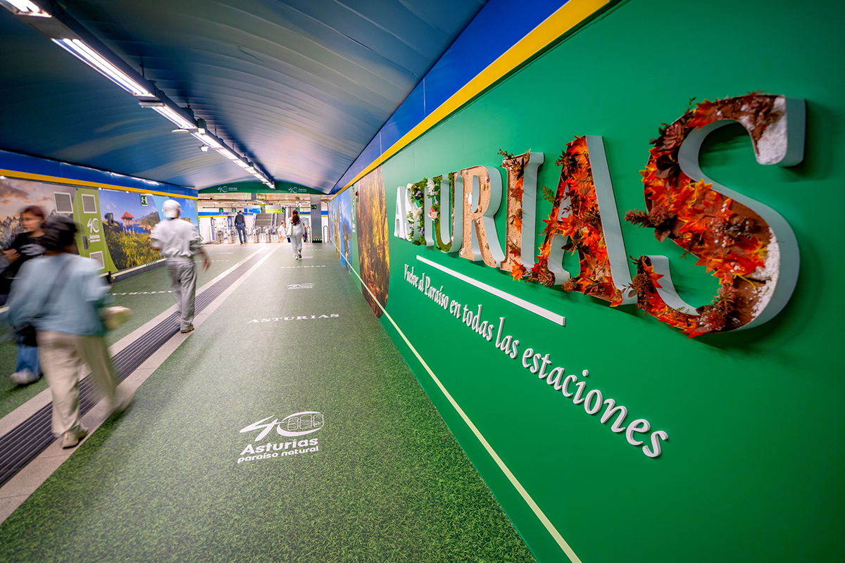 Turismo Asturias, celebra el 40 aniversario de Asturias Paraíso Natural con una espectacular acción de marketing en la estación de metro más transitada del país.